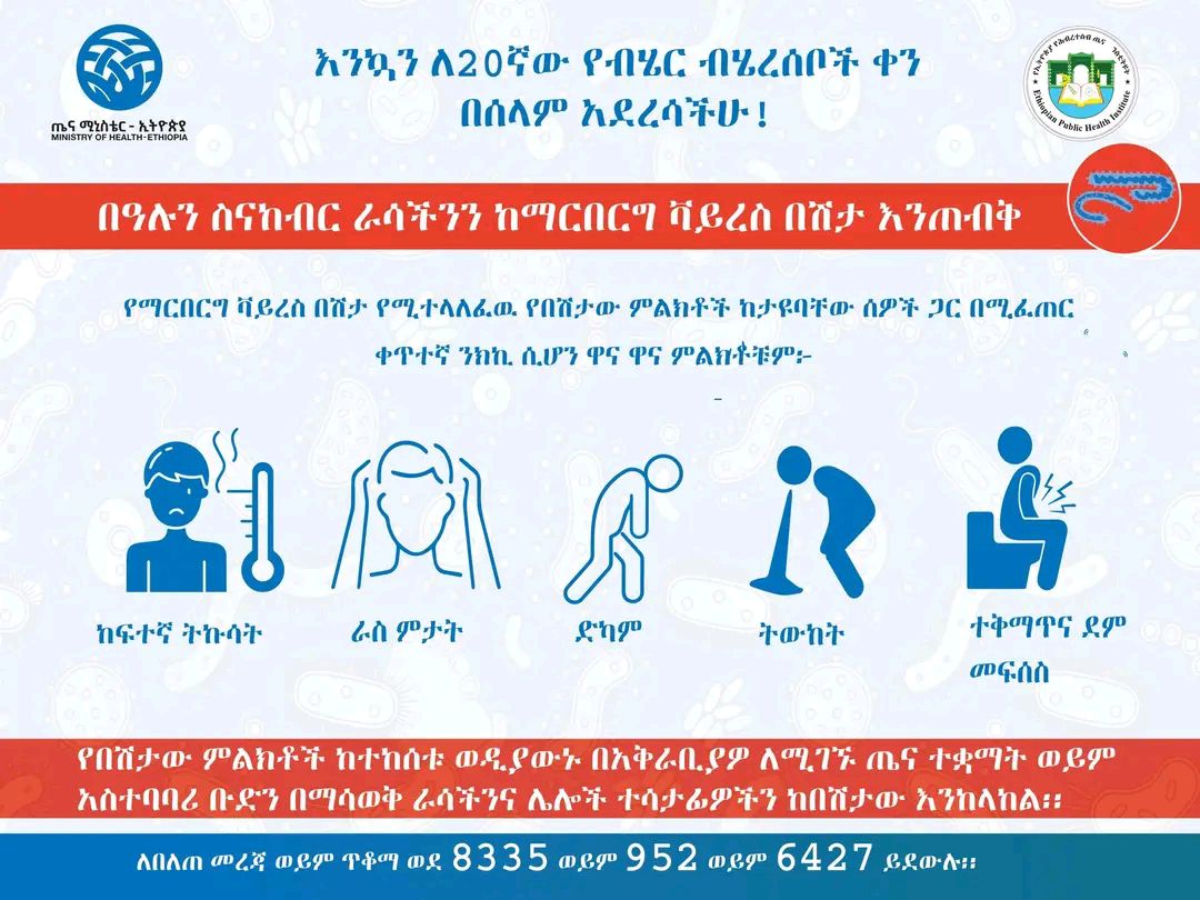 Byadminታህሳስ 3/ 2018 በተጨማሪም በዛሬው ዕለት በተደረገው ምርመራ በቫይረሱ መያዛቸው የተረጋገጠው ታማሚ ከዚህ በፊት ከተገለፀው በደቡብ ኢትዮጵያ ክልል በጂንካ አጠቃላይ ሆስፒታል የህክምና ክትትል ላይ ናቸው። Marburg Virus Disease Daily update Ethiopia December 12/ 2025 Ministry of Health,Ethiopia Ethiopian Public Health Institute