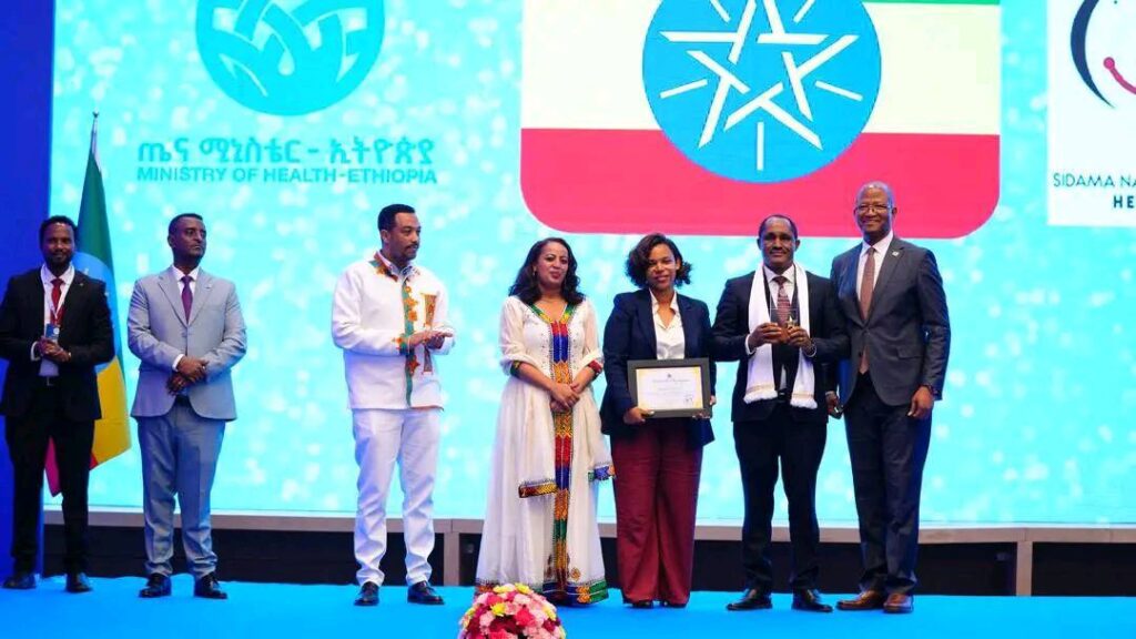 የጤና ሚኒስቴር ሀገራችን ኢትዮጵያ ከማርበርግ በሽታ ወረርሽኝ ሙሉ በሙሉ ነጻ መሆኗን በገለጸበት መድረክ ላይ የሲዳማ ሕብረተሰብ ጤና ኢንስቲትዩት የተከሰተውን የማርበርግ ቫይረስ በሽታ ወረርሽኝን ለመቆጣጠር ስለአከናወነው ተግባራትና ስላበረከተው አሰተዋጽኦ ከህዝብ ተወካይ ምክር ቤት አፈ-ጉባኤ ከተከበሩ አቶ ታገሰ ጫፎ እጅ የሲዳማ ሕብረተሰብ ጤና ኢንስቲትዩት ዋና ዳይሬክተር ክቡር ዶ/ር ዳመነ ደባልቄ ዋንጫና የዕውቅና ምስክር ወረቀት ተቀብለዋል ።