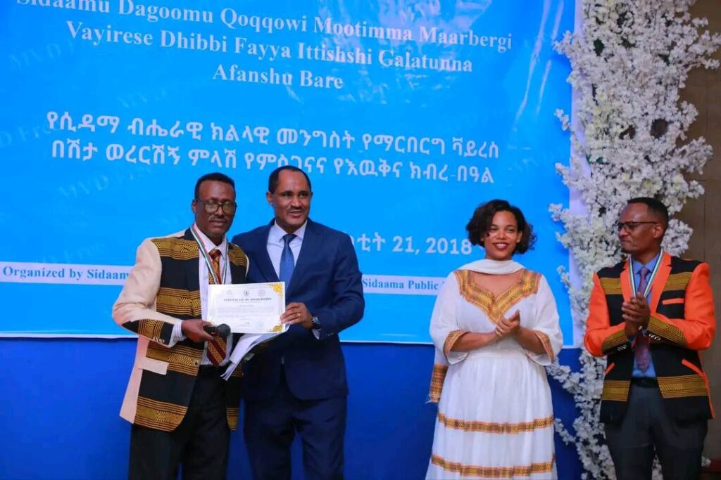 በሲዳማ ክልል የማርበርበርግ ቫይረስ ስርጭትን በመከላከል ሂደት የላቀ ሚና ለተወጡ አካላት የክልሉ ርዕሰ መስተዳደር ክቡር አቶ ደስታ ሌዳሞ፣ የፌደራልና የክልሉ ቁልፍ አመራሮች እና የስራ ኃላፊዎች የጤና ባለሙያዎች እንዲሁም አጋር ድርጅቶች እና ባለድርሻ አካላት በተገኙበት የዕውቅናና የምስጋና መርሐ ግብር ተከናውኗል።