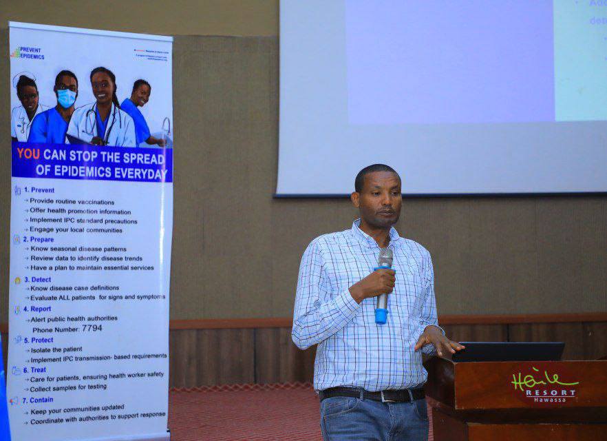 የወርክሾፑን የመክፈቻ ንግግር ያደረጉት የሲዳማ ክልል የሕ/ሰብ ጤና ኢንስቲትዩት ዳይሬክተር ጄነራል ዶ/ር ዳመነ ደባልቄ ሲሆን ‘Resolve to save life Ethiopia’ ከተባለ መንግስታዊ ካልሆነ ድርጅት ጋር በመተባበር መስራት ከተጀመረ ወዲህ በመጀመሪያ ዙር በታቀፉ ተቋማት ሊከሰቱ የሚችሉ ወረርሽኖችን በጥራት መቃኘት፣በጊዜ ማሳወቅና ምላሽ የመስጠት አቅምን ከነበረበት 63% ወደ 95% ማድረስ መቻሉን በመጥቀስ የወረርሽን ቆይታ ጊዜ፥ የህመምና ሞት መጠንን በከፍተኛ ደረጃ መቀነስ መቻሉን በሰፊው አብራርተዋል።