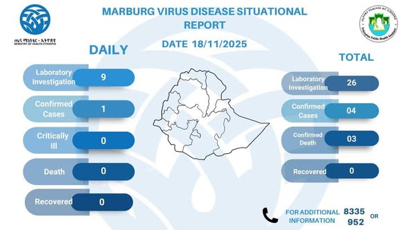 ህዳር 9/ 2018 Marburg Virus Disease Daily update Ethiopia November 18/ 2025 #Ministry of Health,Ethiopia #Ethiopian Public Health Institute