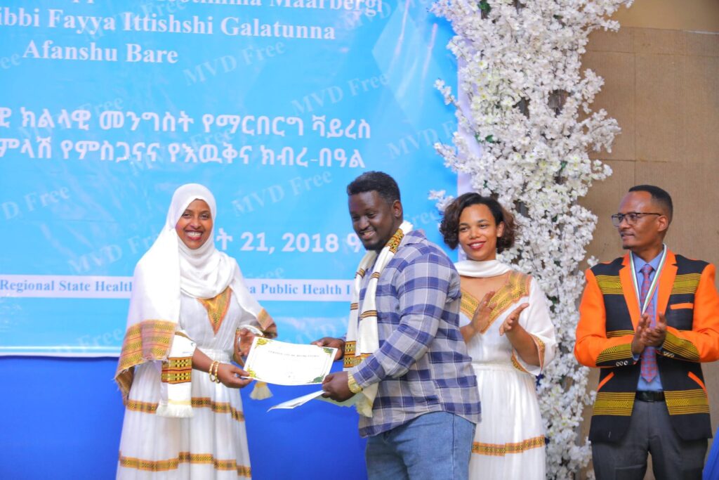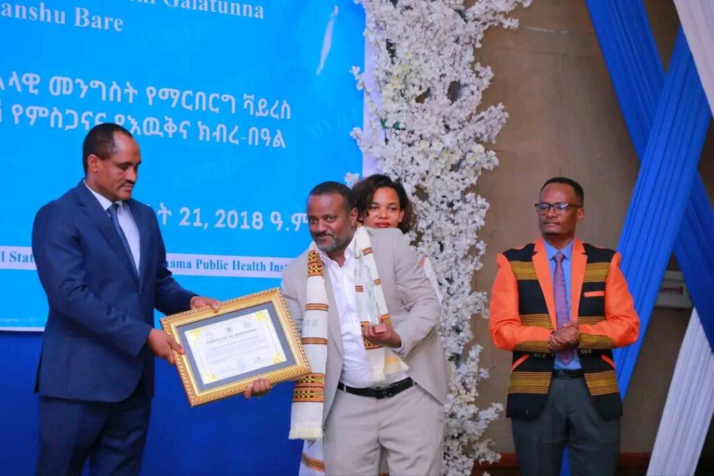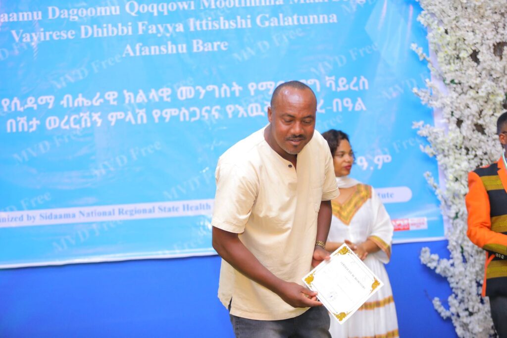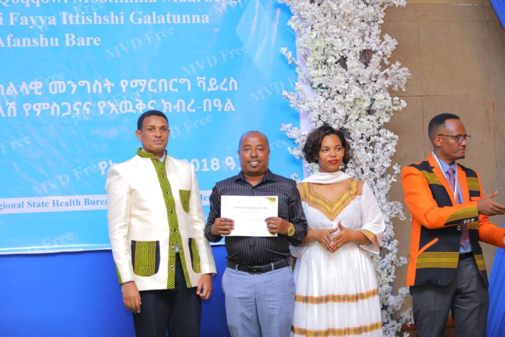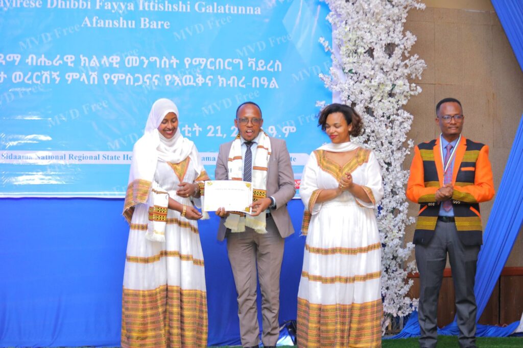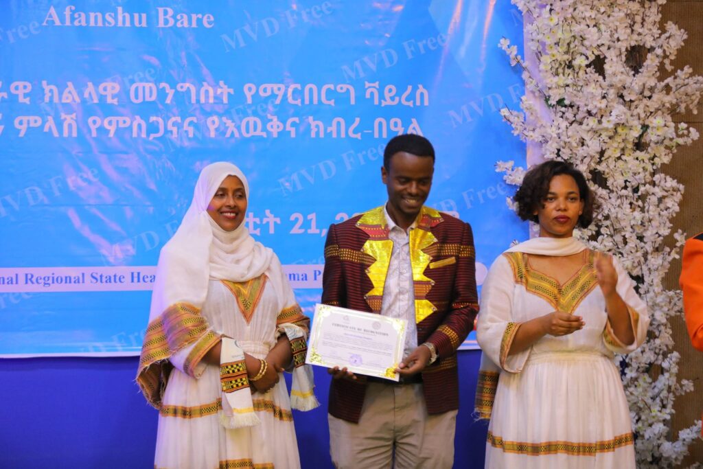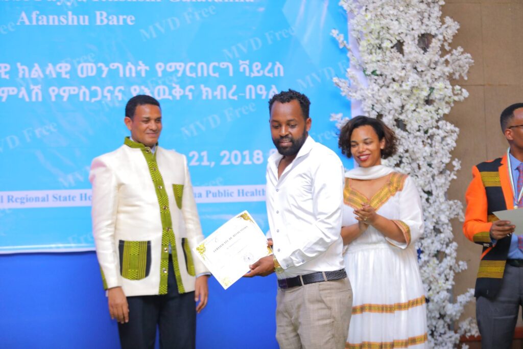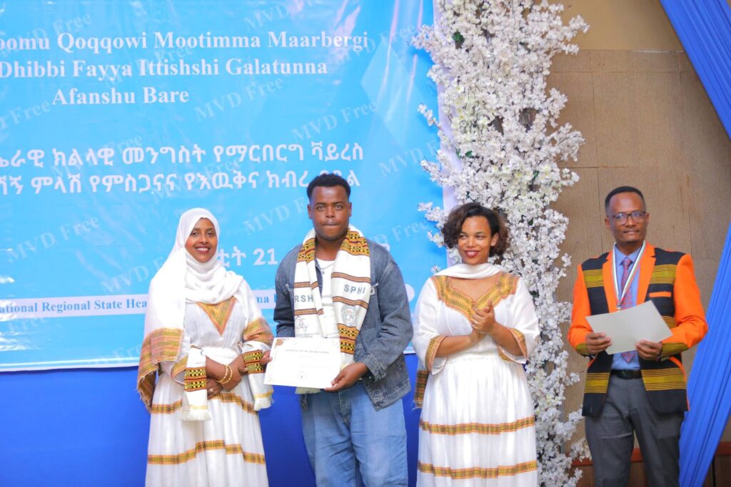 በሲዳማ ክልል የማርበርበርግ ቫይረስ ስርጭትን በመከላከል ሂደት የላቀ ሚና ለተወጡ አካላት የክልሉ ርዕሰ መስተዳደር ክቡር አቶ ደስታ ሌዳሞ፣ የፌደራልና የክልሉ ቁልፍ አመራሮች እና የስራ ኃላፊዎች የጤና ባለሙያዎች እንዲሁም አጋር ድርጅቶች እና ባለድርሻ አካላት በተገኙበት የዕውቅናና የምስጋና መርሐ ግብር ተከናውኗል።