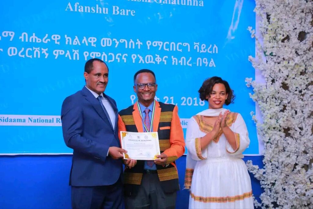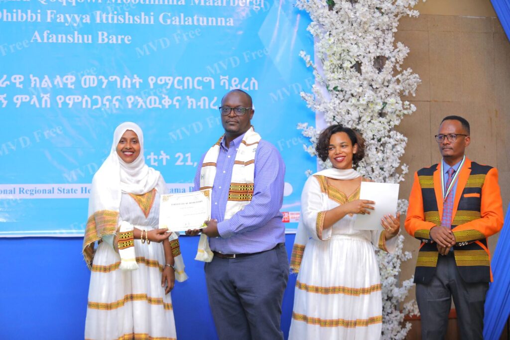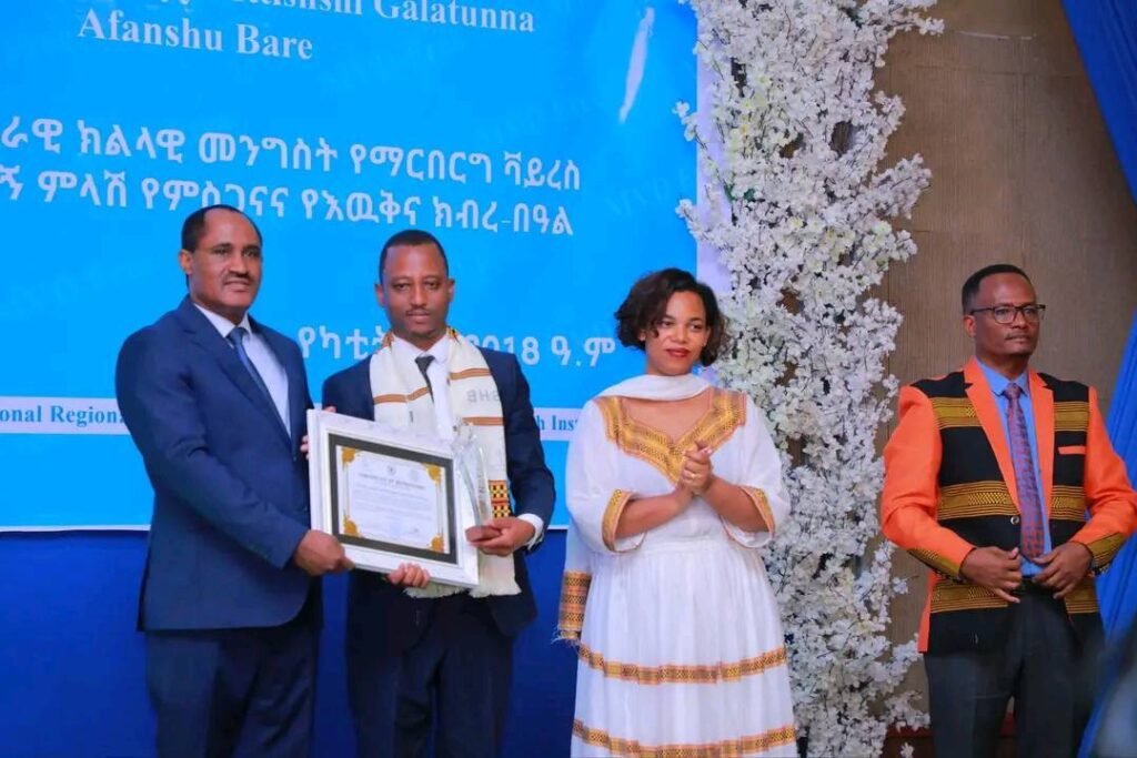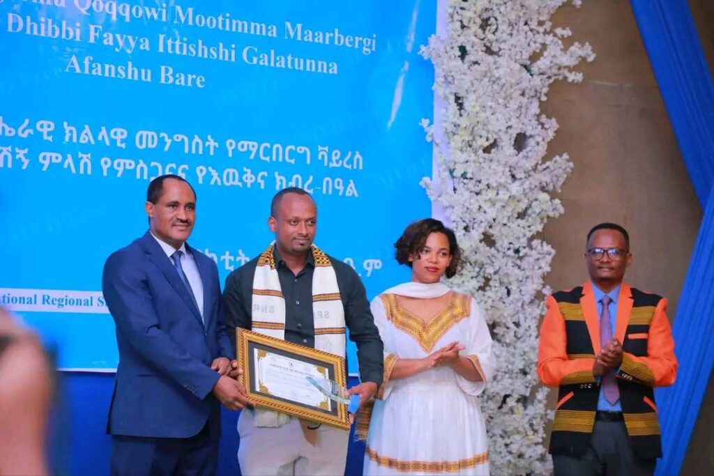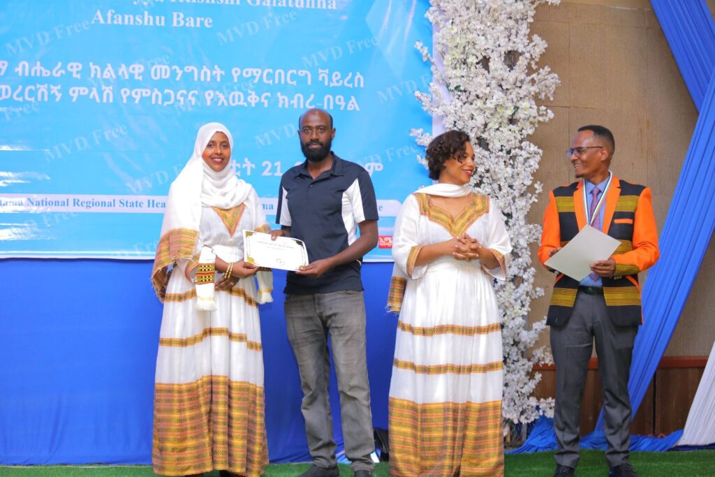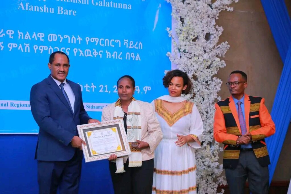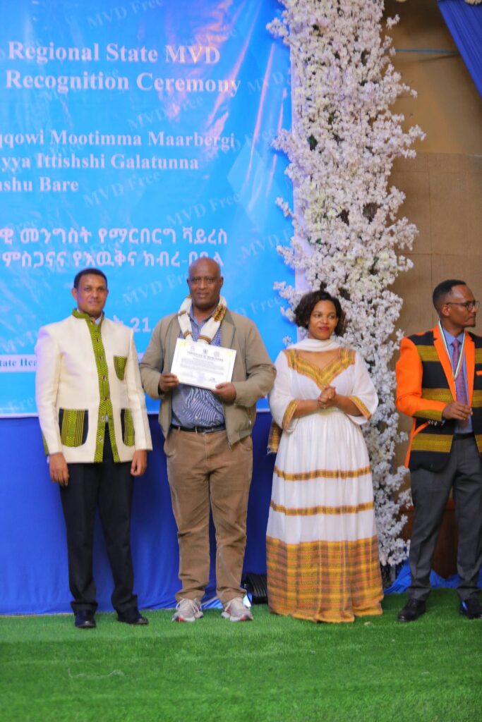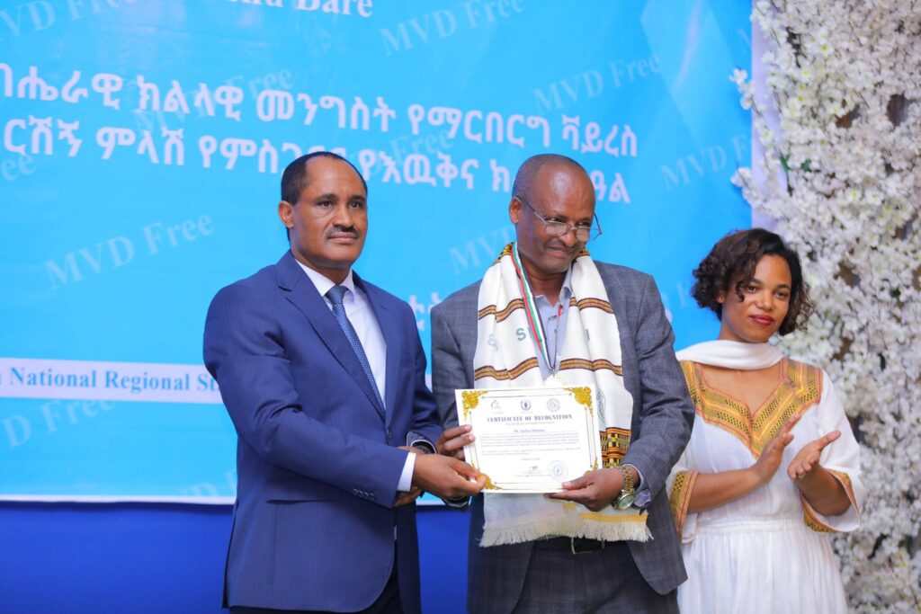 በሲዳማ ክልል የማርበርበርግ ቫይረስ ስርጭትን በመከላከል ሂደት የላቀ ሚና ለተወጡ አካላት የክልሉ ርዕሰ መስተዳደር ክቡር አቶ ደስታ ሌዳሞ፣ የፌደራልና የክልሉ ቁልፍ አመራሮች እና የስራ ኃላፊዎች የጤና ባለሙያዎች እንዲሁም አጋር ድርጅቶች እና ባለድርሻ አካላት በተገኙበት የዕውቅናና የምስጋና መርሐ ግብር ተከናውኗል።