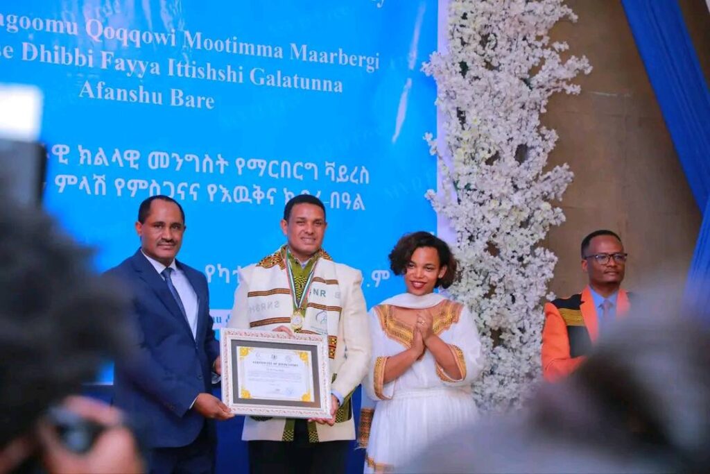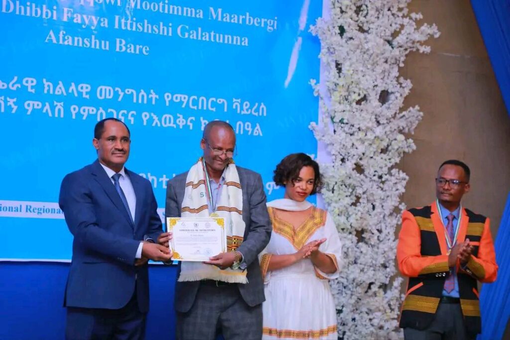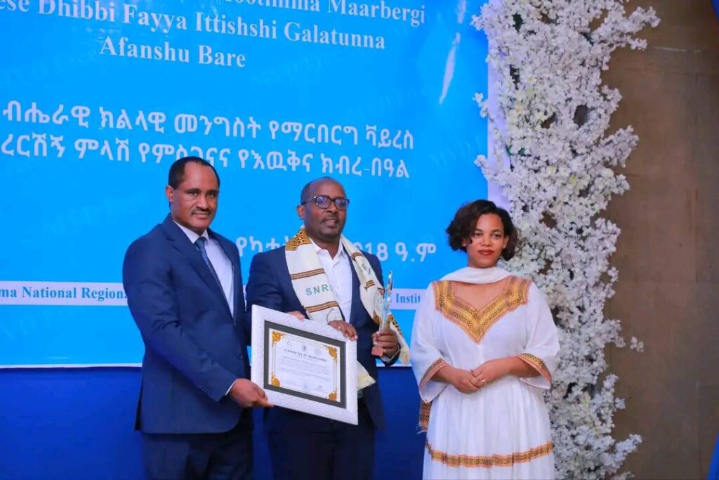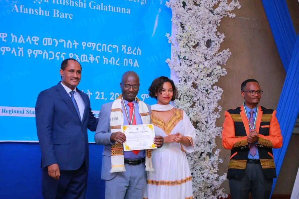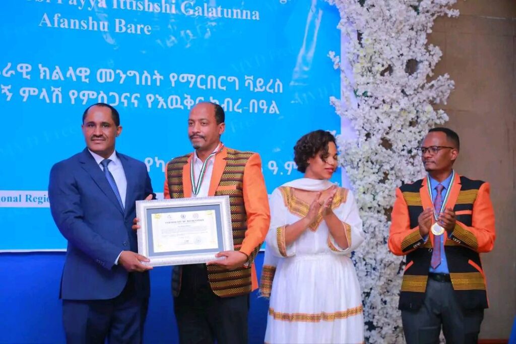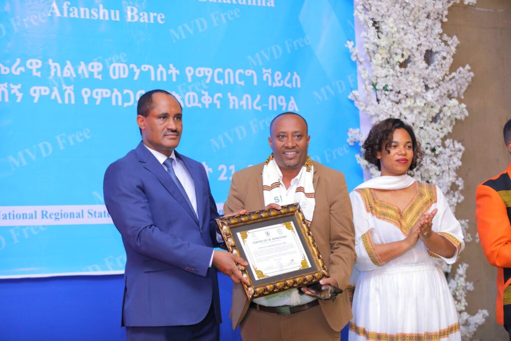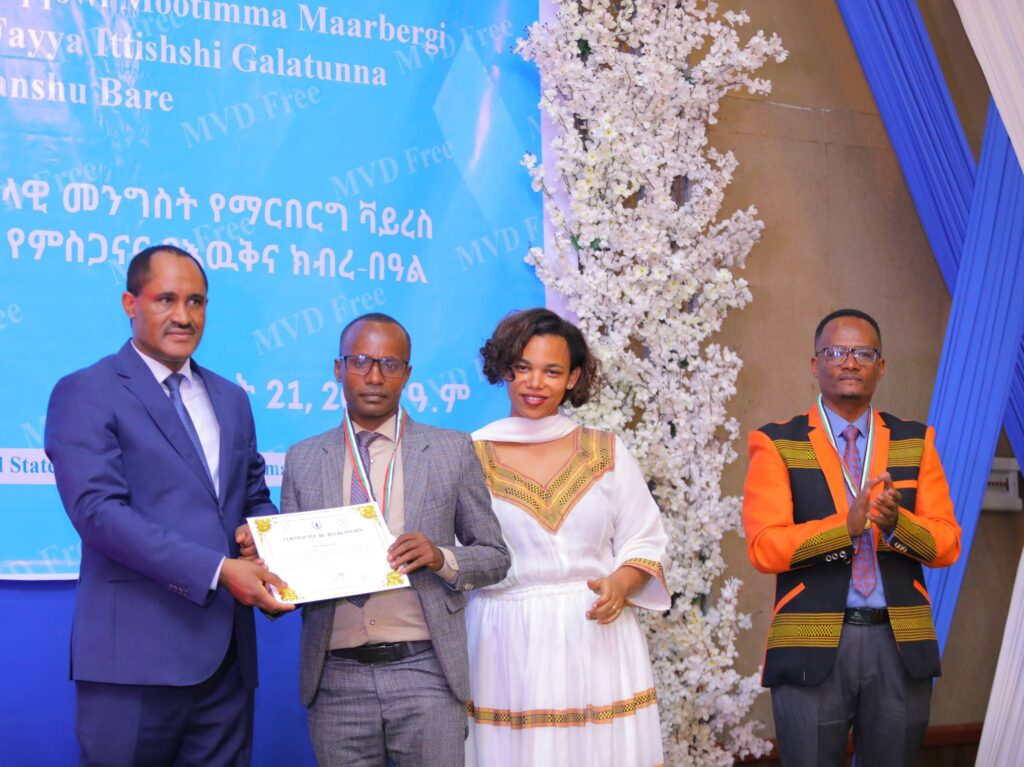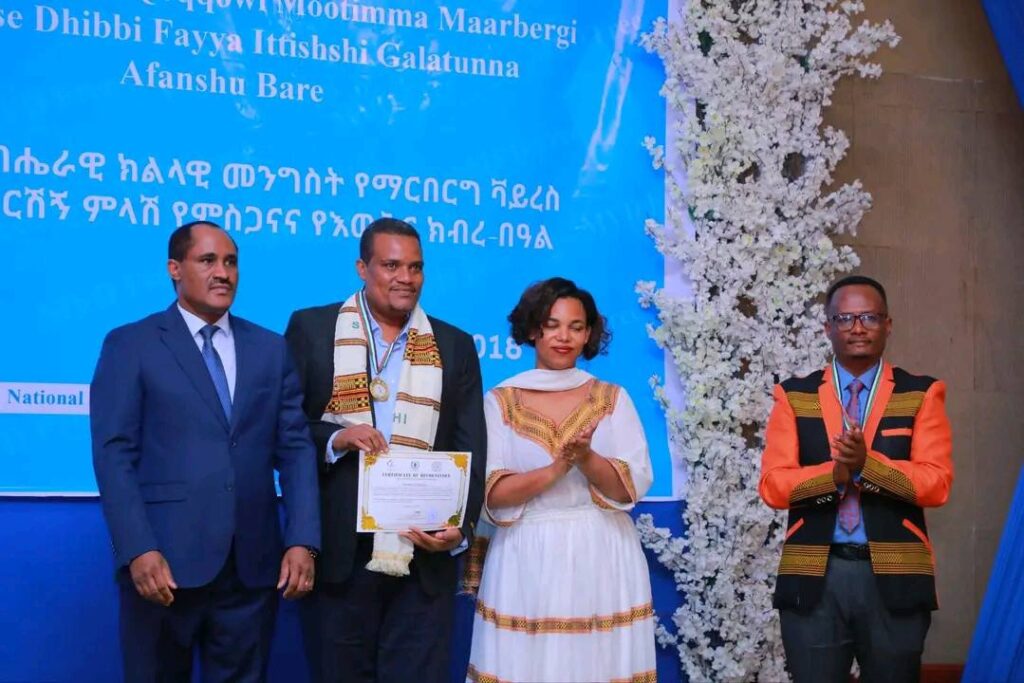 በሲዳማ ክልል የማርበርበርግ ቫይረስ ስርጭትን በመከላከል ሂደት የላቀ ሚና ለተወጡ አካላት የክልሉ ርዕሰ መስተዳደር ክቡር አቶ ደስታ ሌዳሞ፣ የፌደራልና የክልሉ ቁልፍ አመራሮች እና የስራ ኃላፊዎች የጤና ባለሙያዎች እንዲሁም አጋር ድርጅቶች እና ባለድርሻ አካላት በተገኙበት የዕውቅናና የምስጋና መርሐ ግብር ተከናውኗል።