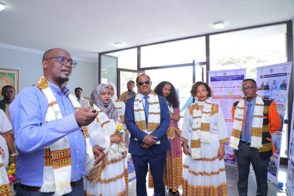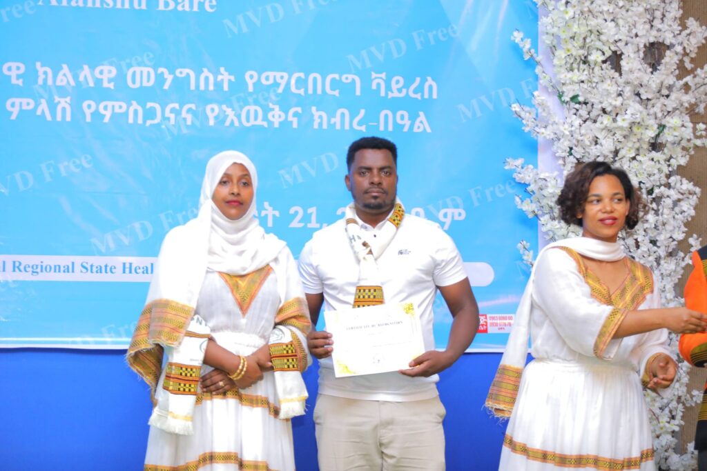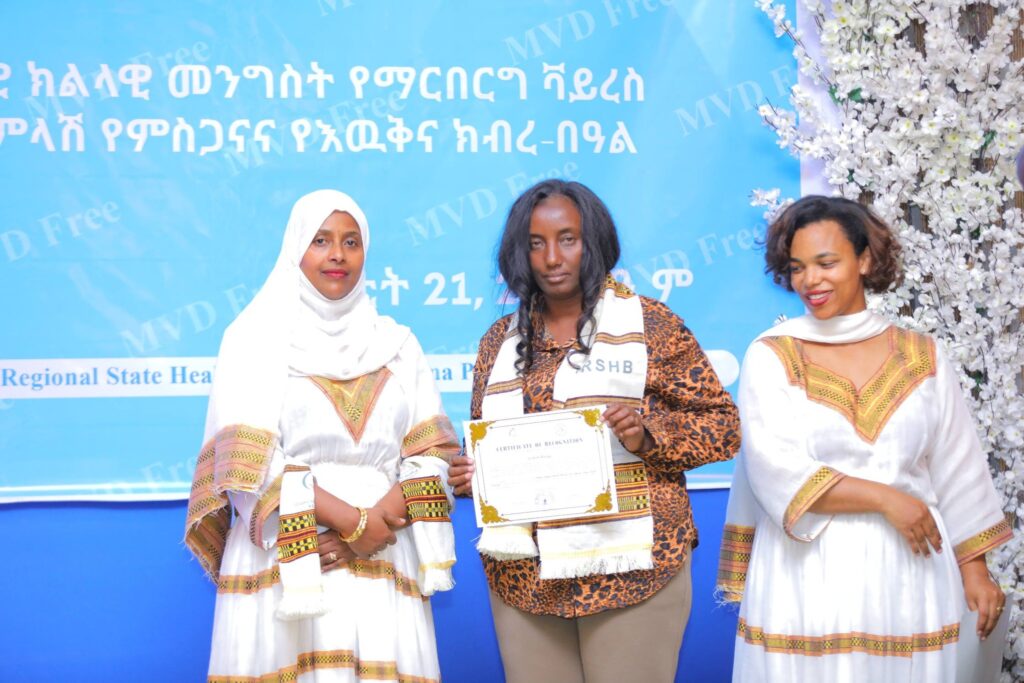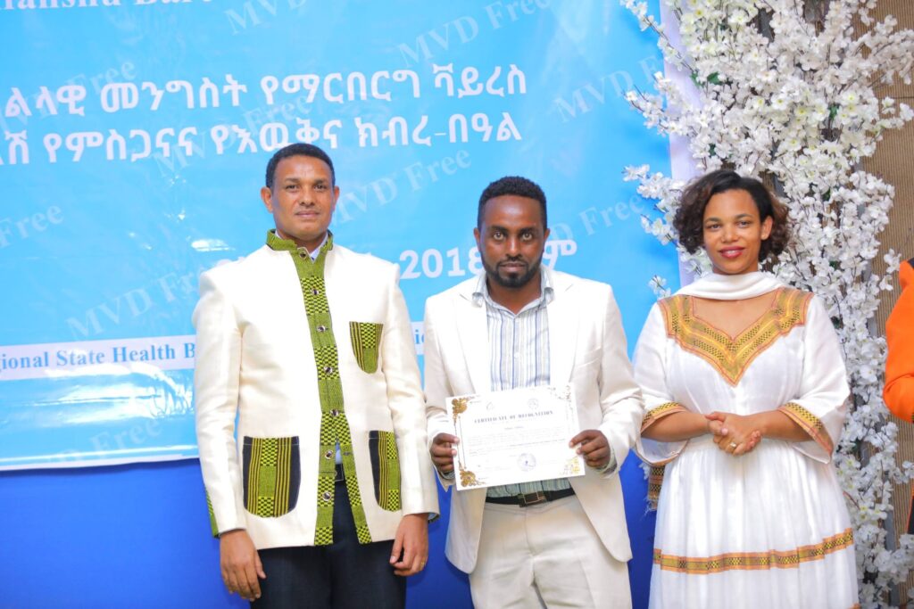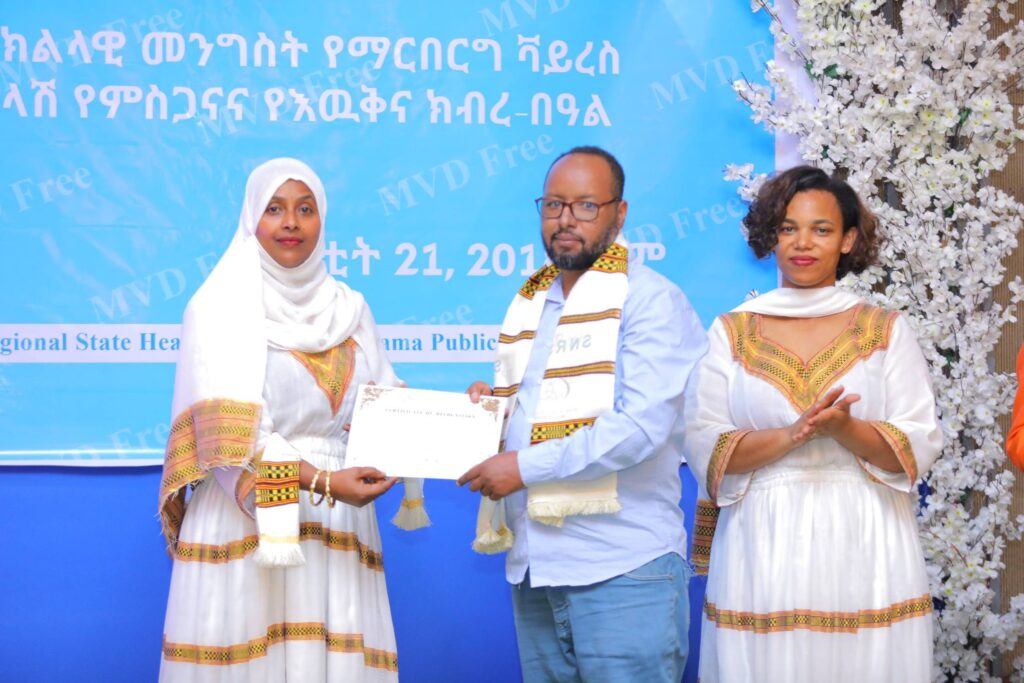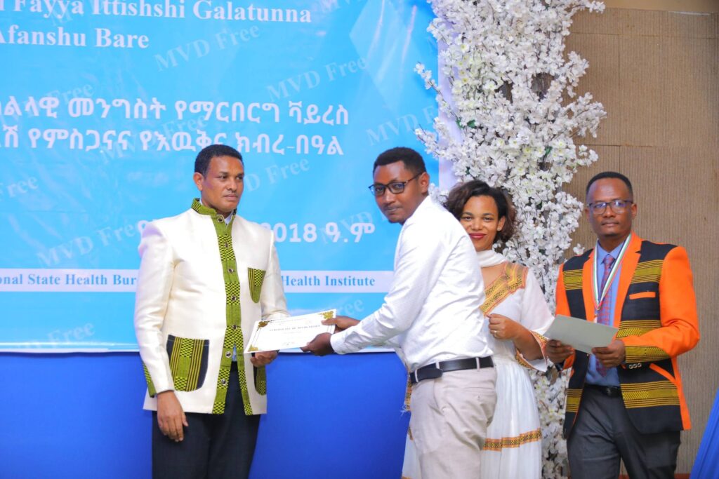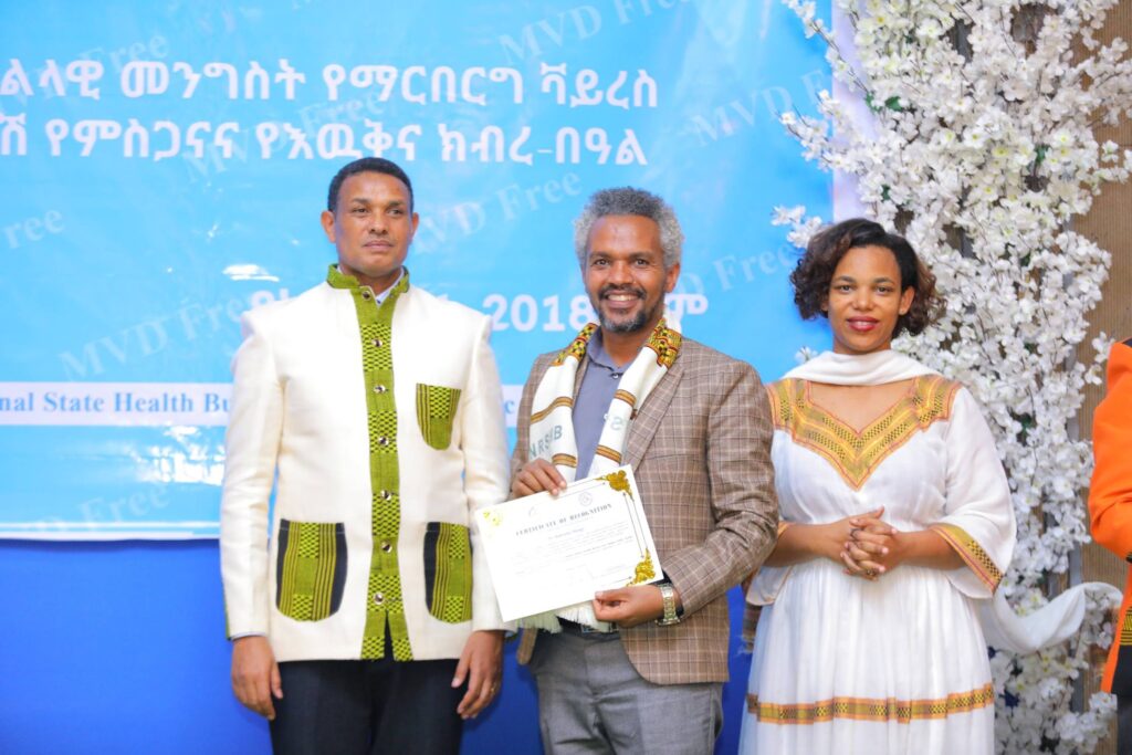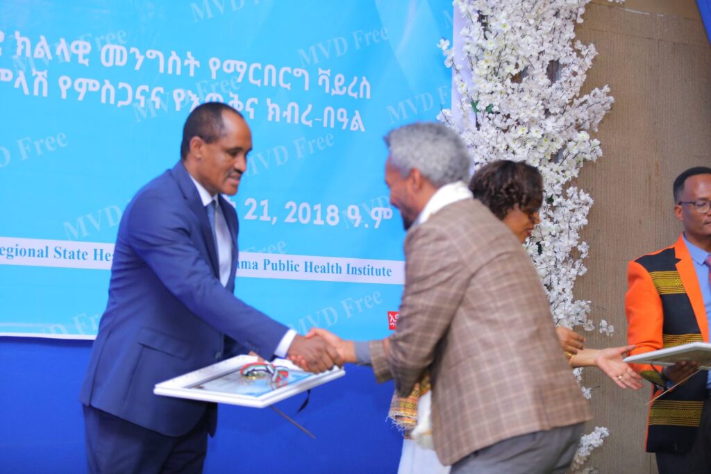 በመርሐ ግብሩ ላይ የፌደራል ጤና ሚኒስቴርና የኢትዮጵያ ህብረተሰብ ጤና ኢኒስቲትዩት ከፍተኛ አመራሮችና የስራ ሀላፊዎች፣ የክልሉ ጤና ቢሮ የማኔጅመንት አካላትና ባለሙያዎች ከየመዋቅሩ የተሳተፉ የጤና አመራሮችና ባለሙያዎች፣ባለድርሻ አካላትና አጋር ድርጅቶች ቫይረሱን ለመከላከል ላበረከቱት አስተዋጽኦ የምስጋናና የእውቅና ሽልማት ተበርክቶላቸዋል።